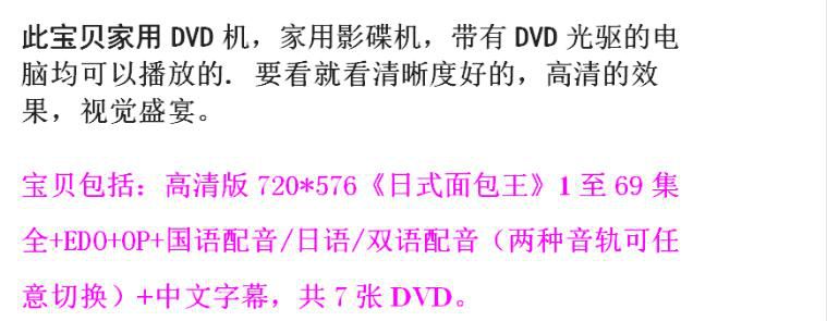 歡迎您對"碟機高清動畫片/日式面包王/烘焙王/1-69集全/台灣國語/日語/中字7DVD" 發表評論