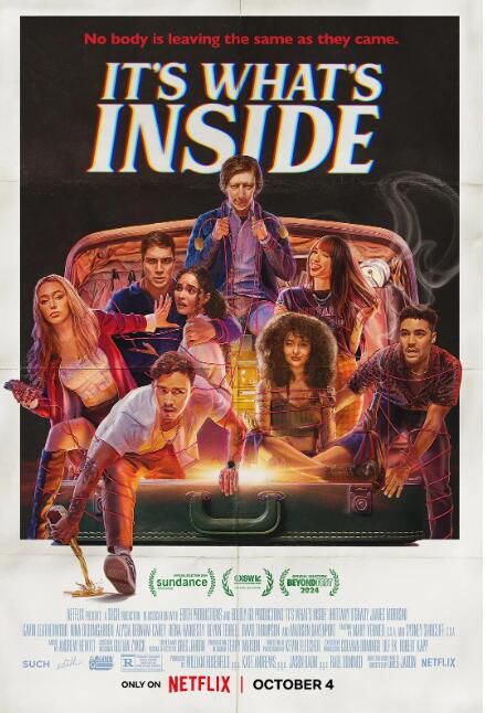 一名疏遠已久的朋友帶著一個神秘的手提箱出現,裏面裝著一個可以誘導身體交換的神秘裝置,讓這次婚前派對變成了一場存在主義的噩夢。在誘惑之下,這群人參與了一場扭曲的遊戲,發現了隱藏的真相,喚醒了被壓抑的欲望和根深蒂固的怨恨。隨著謊言和令人震驚的揭露席卷他們的生活,《開箱靈魂》通過腦洞大開的劇情層層剝開謎團。格雷格·雅丹的處女作曾在聖丹斯和西南偏南電影節上收獲好評如潮,融合了驚悚、黑色喜劇和科幻元素,敘事發人深省,風格獨具,讓觀眾大膽質疑:我們真的了解自己嗎?